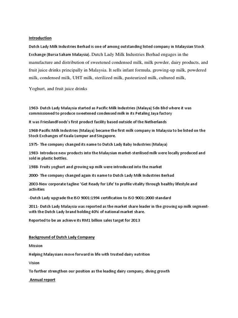 Introduction Dutch Lady Pdf Business Economics Business